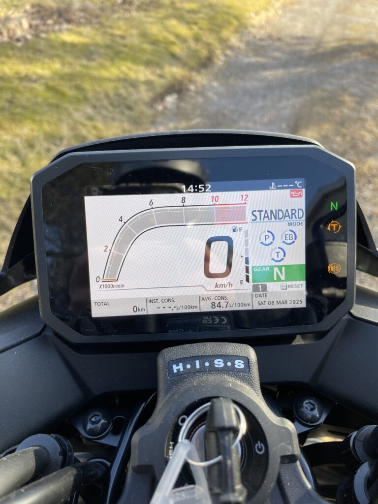 Våren var ovanligt tidig i år. Vi körde massor, mer än vad vi nästan vågat hoppas på och redan i slutet av april hade vi åkt så mycket så att 100-milsservicen behövde bokas in. Det var verkligen på håret, vi fick hyra släpvagn ännu en gång. I efterhand var det nog tur, för just den dagen vräkte regnet ner. Att sätta sig på hojen i det vädret och köra drygt 17 mil (enkel resa) och dessutom i värsta april-vädret (2 maj) hade inte varit någon höjdare. Precis när vi körde upp Hondan på släpvagnen efter servicen slog mätaren om till 100 mil.