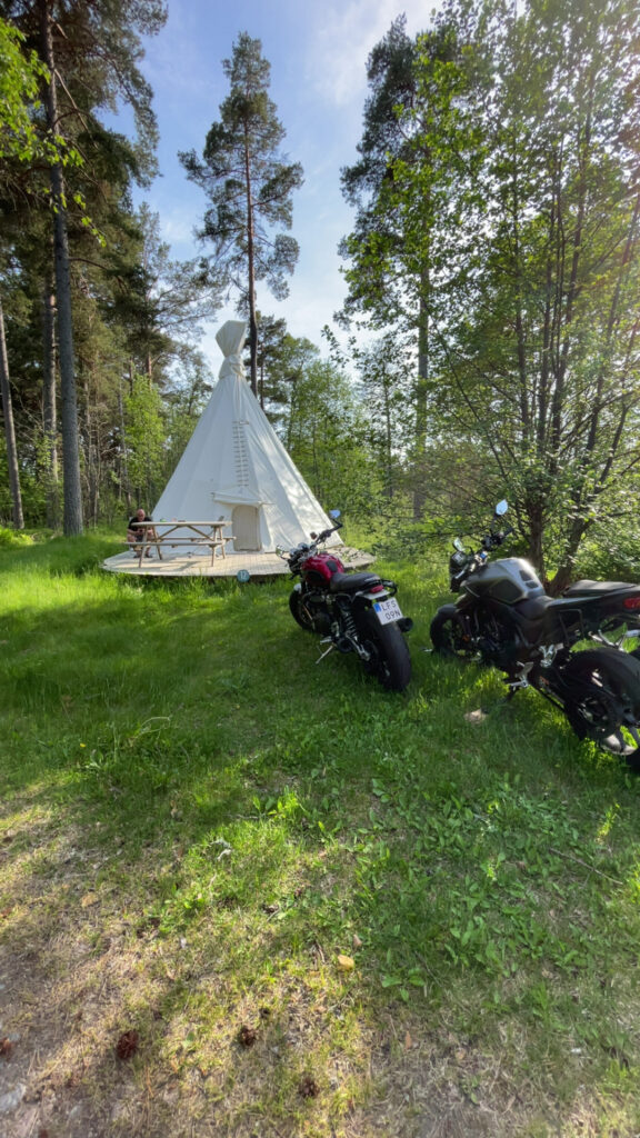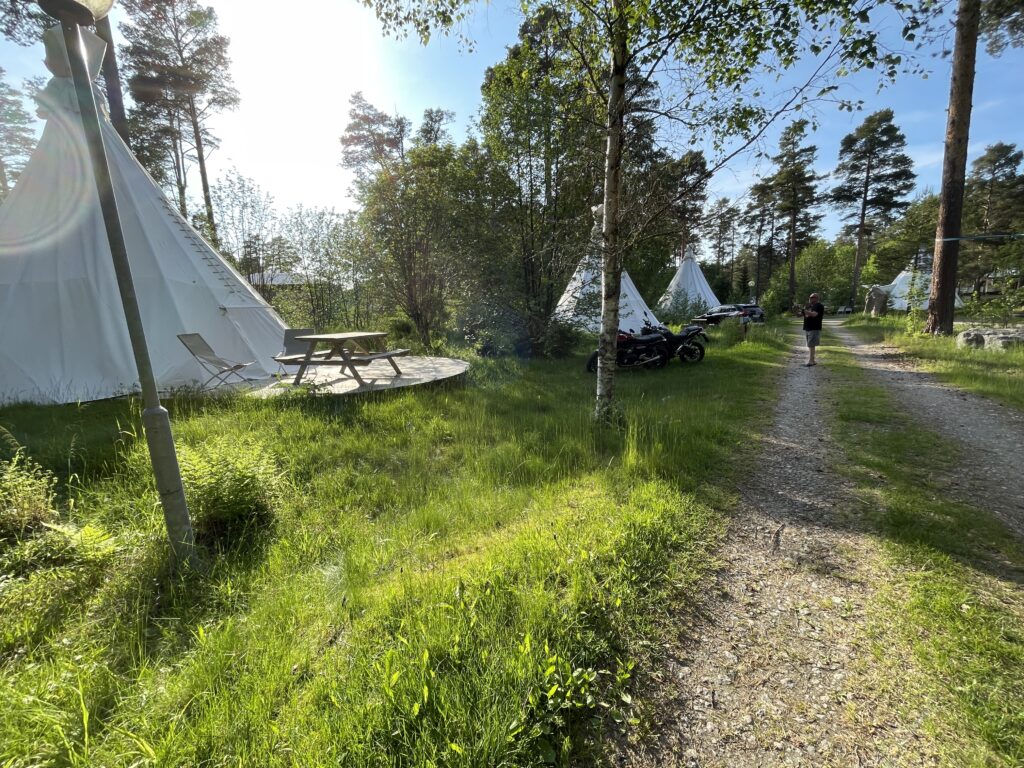 Jag hade bokat ett glampingtält, eftersom det faktiskt hör till att man ska tälta när man är på mc-semester…även om tältet den här gången var lite lyxigare än vanligt.